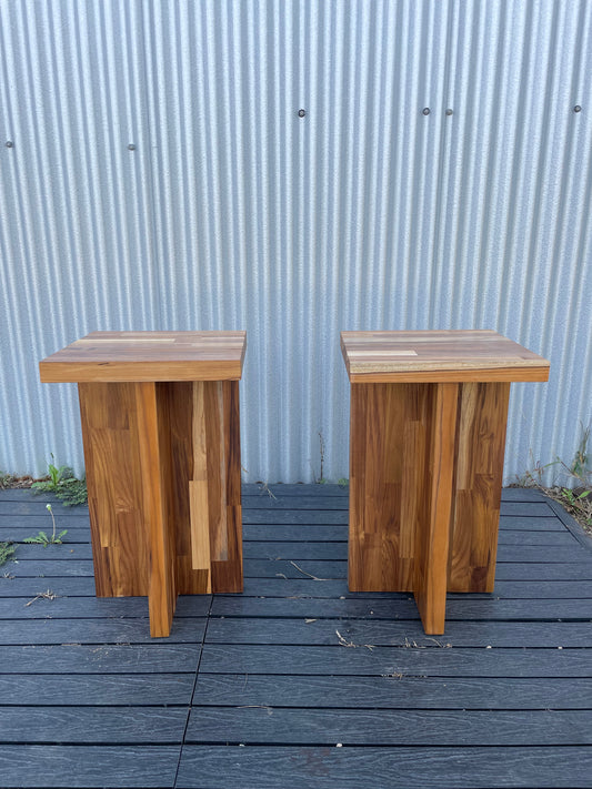 Handmade Teak Butcher Block Side Table